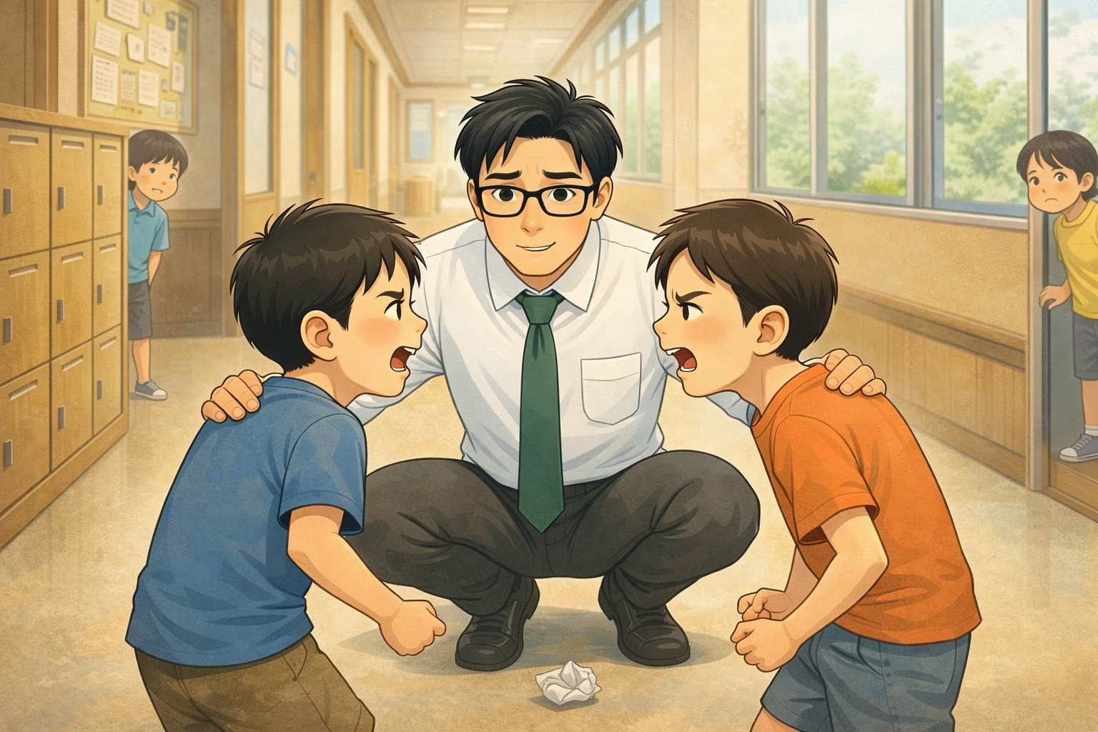 休み時間に教室や廊下で子ども同士がもめる場面は、どの学年でも起こります。些細な言い合いからケンカに発展することもあり、見過ごせないけれど、どう対応すればいいか迷う瞬間も少なくありません。