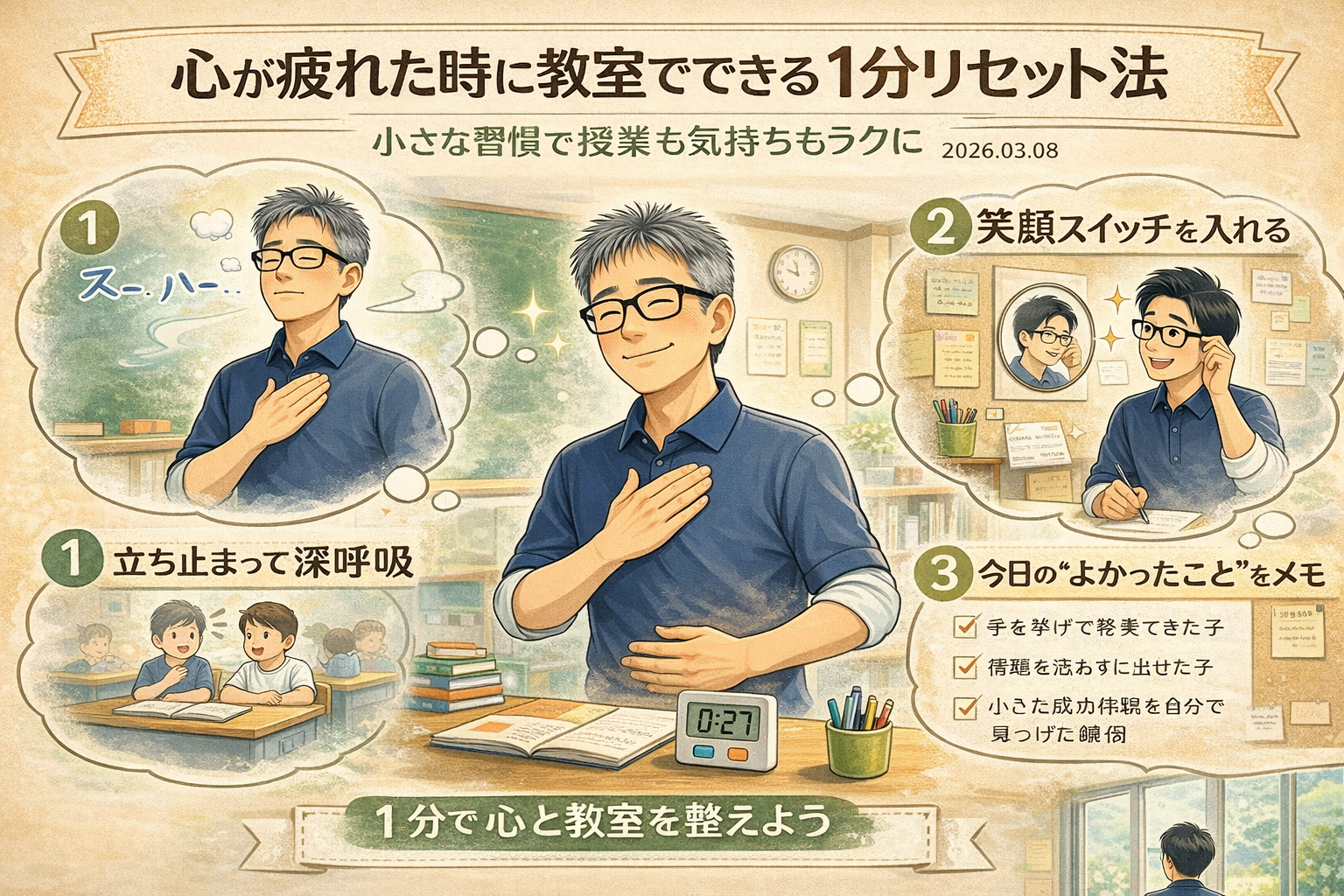朝の一瞬、休み時間、授業の合間に「1分リセット」を意識するだけで、教室も自分の心も少しずつ整ってきます。